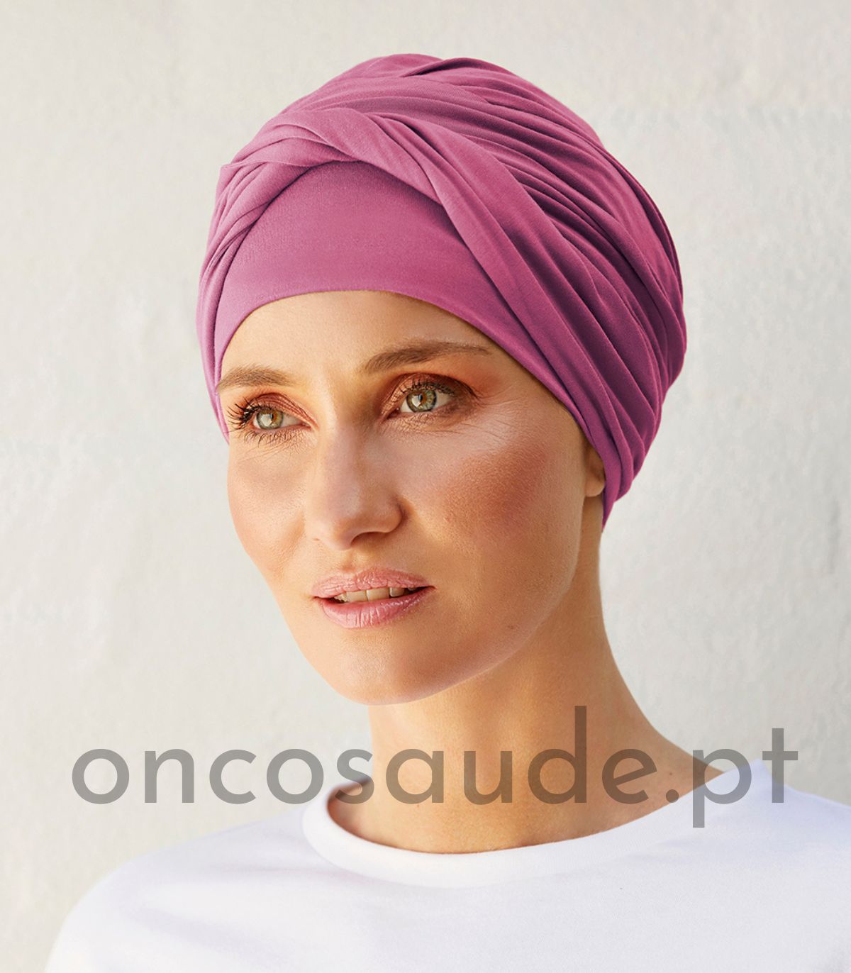 O turbante oncológico Mila destaca-se pela sua elegância e facilidade de colocação, estando disponível em várias cores.