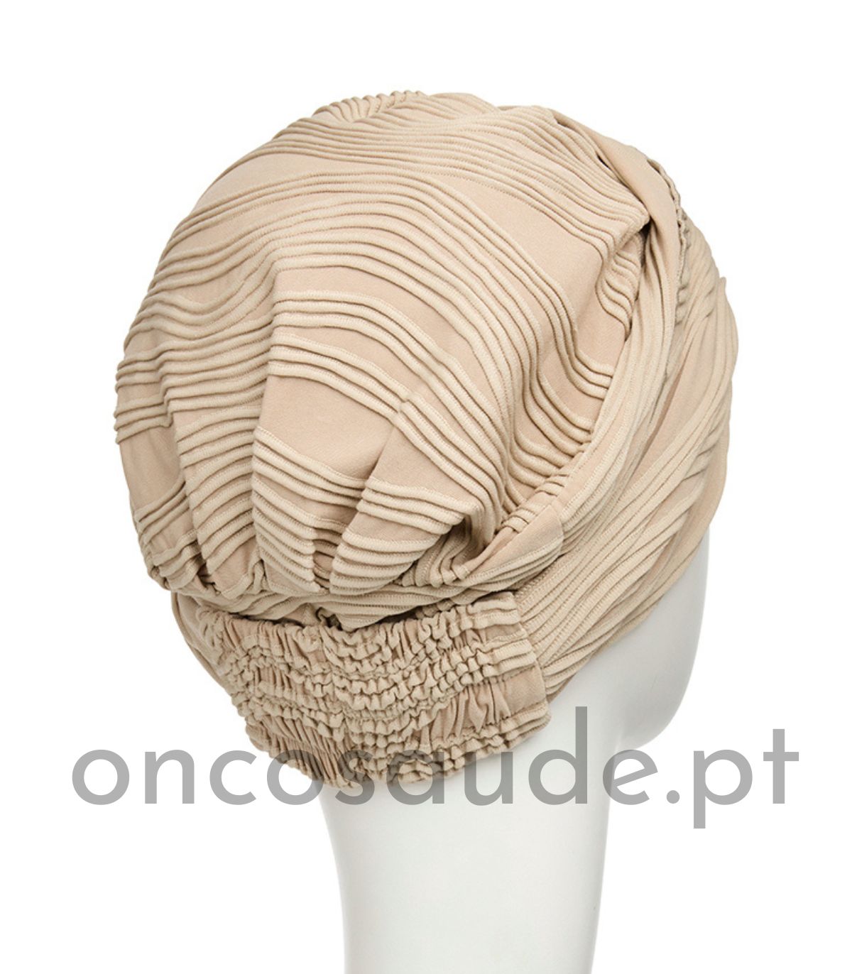O turbante permite a respiração adequada da pele, sendo adequado a peles sensibilizadas devido a realização de tratamentos oncológicos.